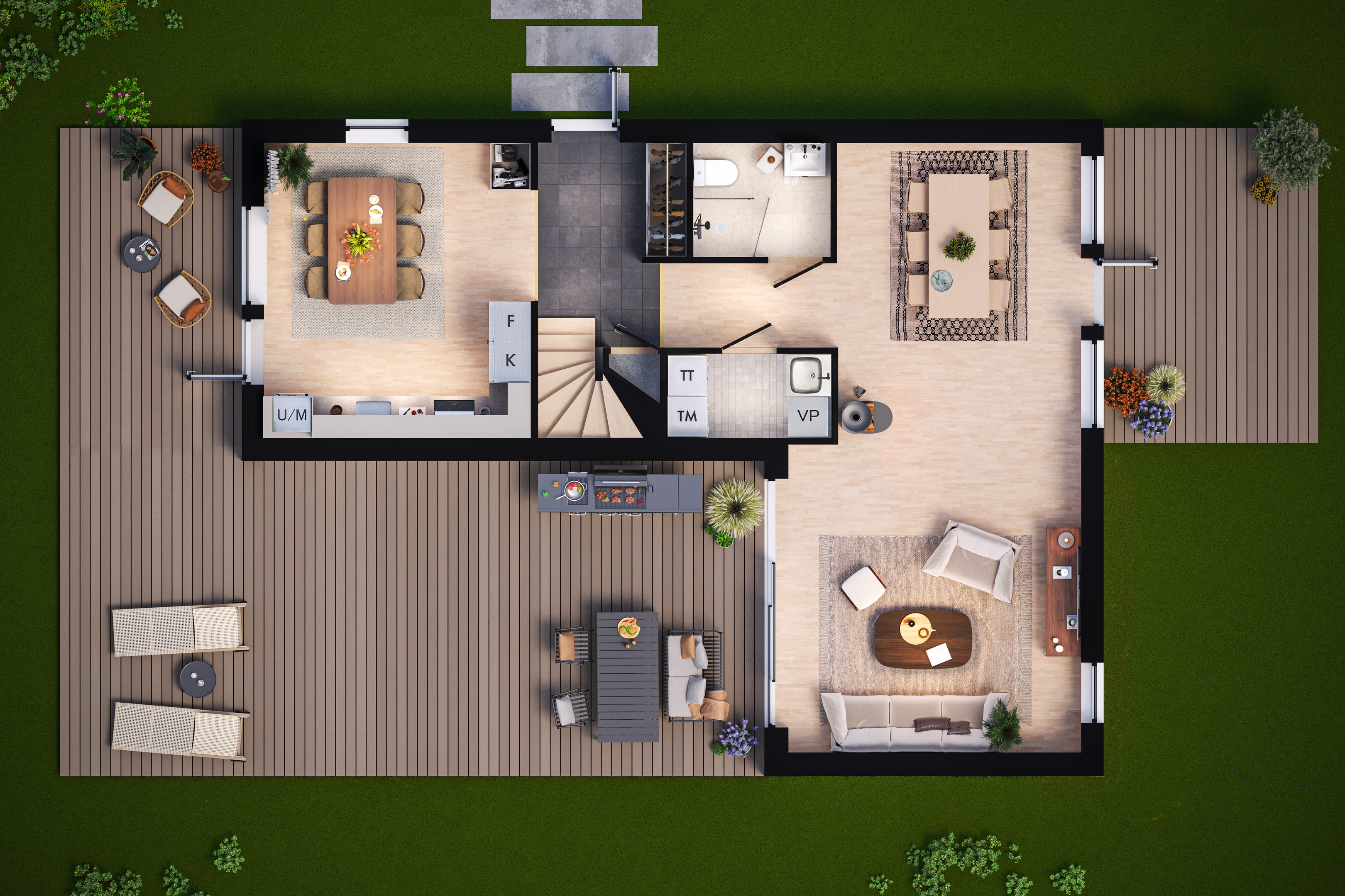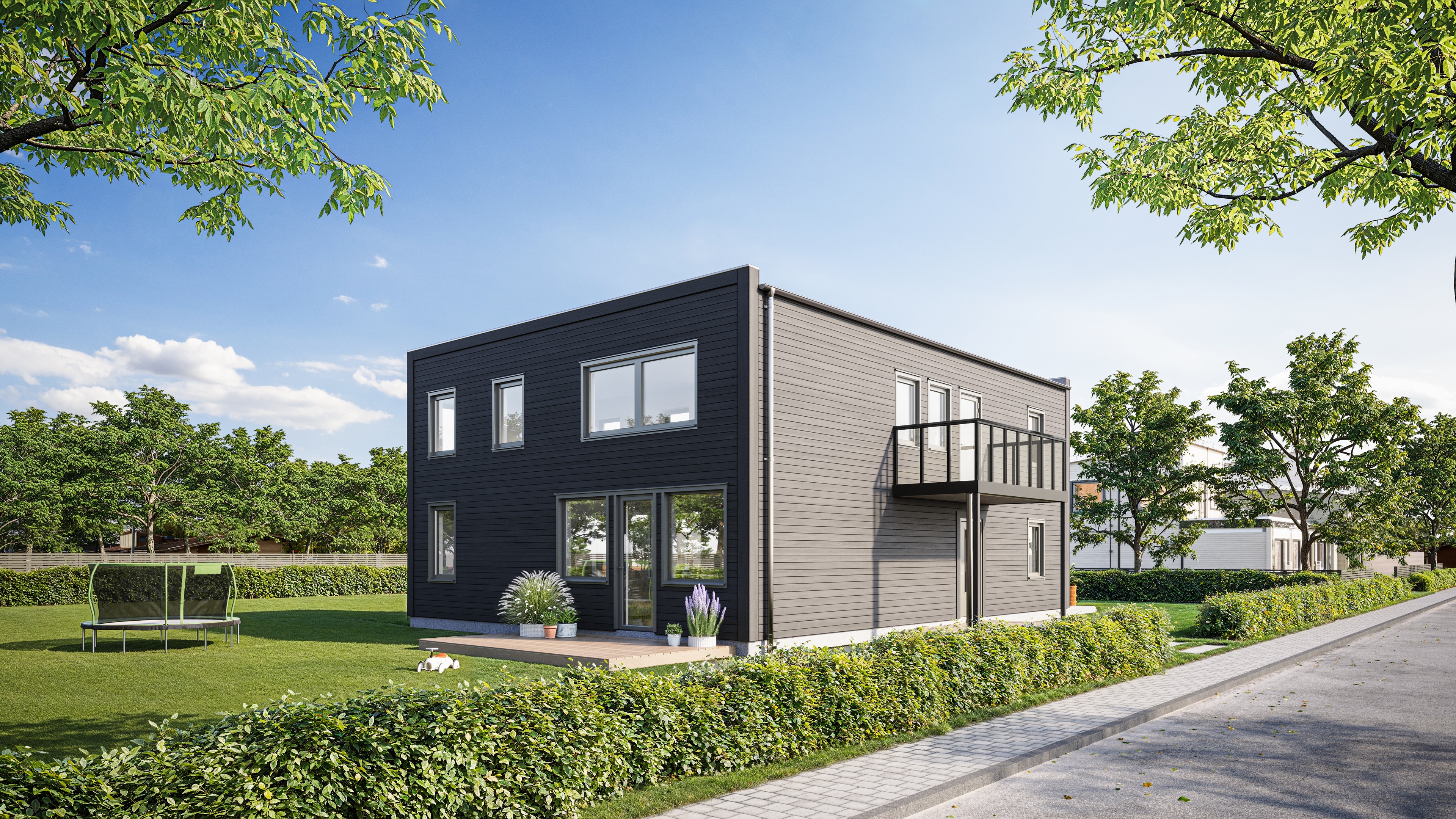 Välkommen till ett modernt och välplanerat hem som kombinerar funktion och stil på bästa sätt! Villa Trend erbjuder smart planlösning, ljusa varma färger och generösa ljusinsläpp från stora fönster.