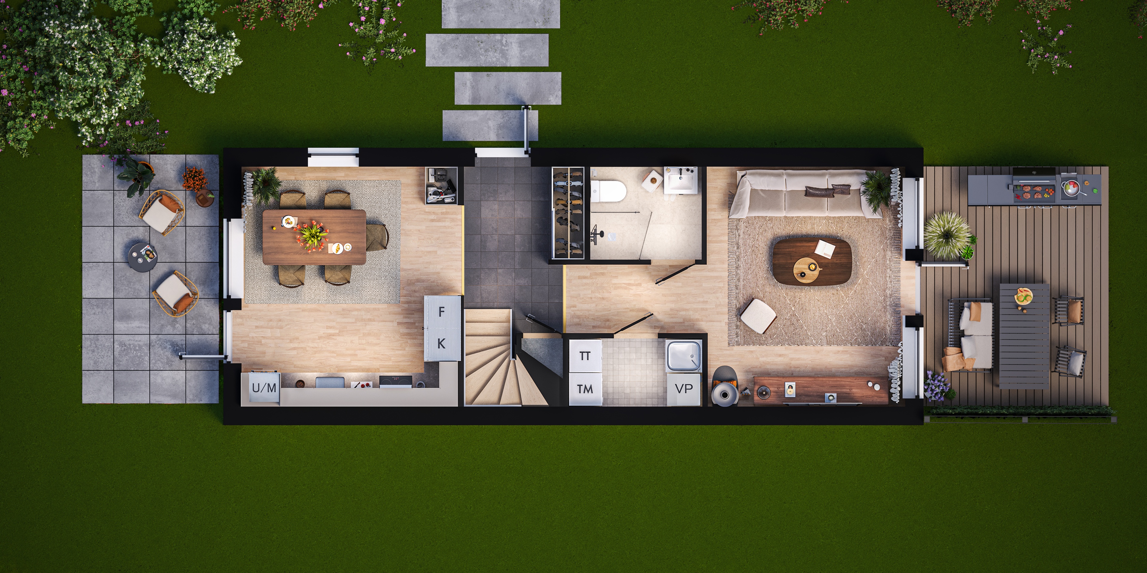 Villa Trend Flex kan beställas som det är och passar både för stora och små tomter. Vill man köpa en tomt med en mer generös byggrätt men inte bygga ett för stort hus på en gång är Villa Flex det perfekta valet.