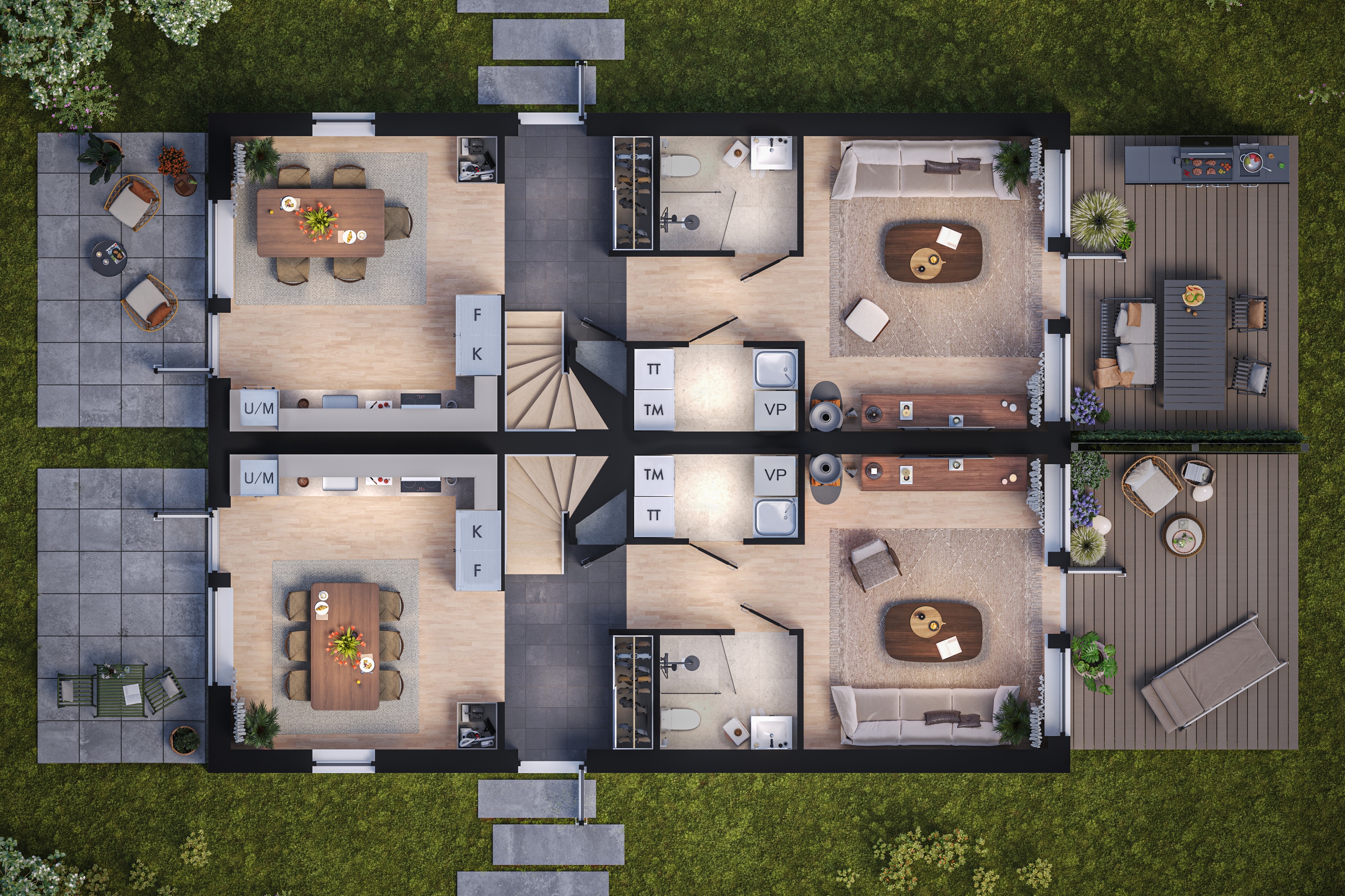 Uteplats både på framsidan och baksidan för härliga stunder utomhus.