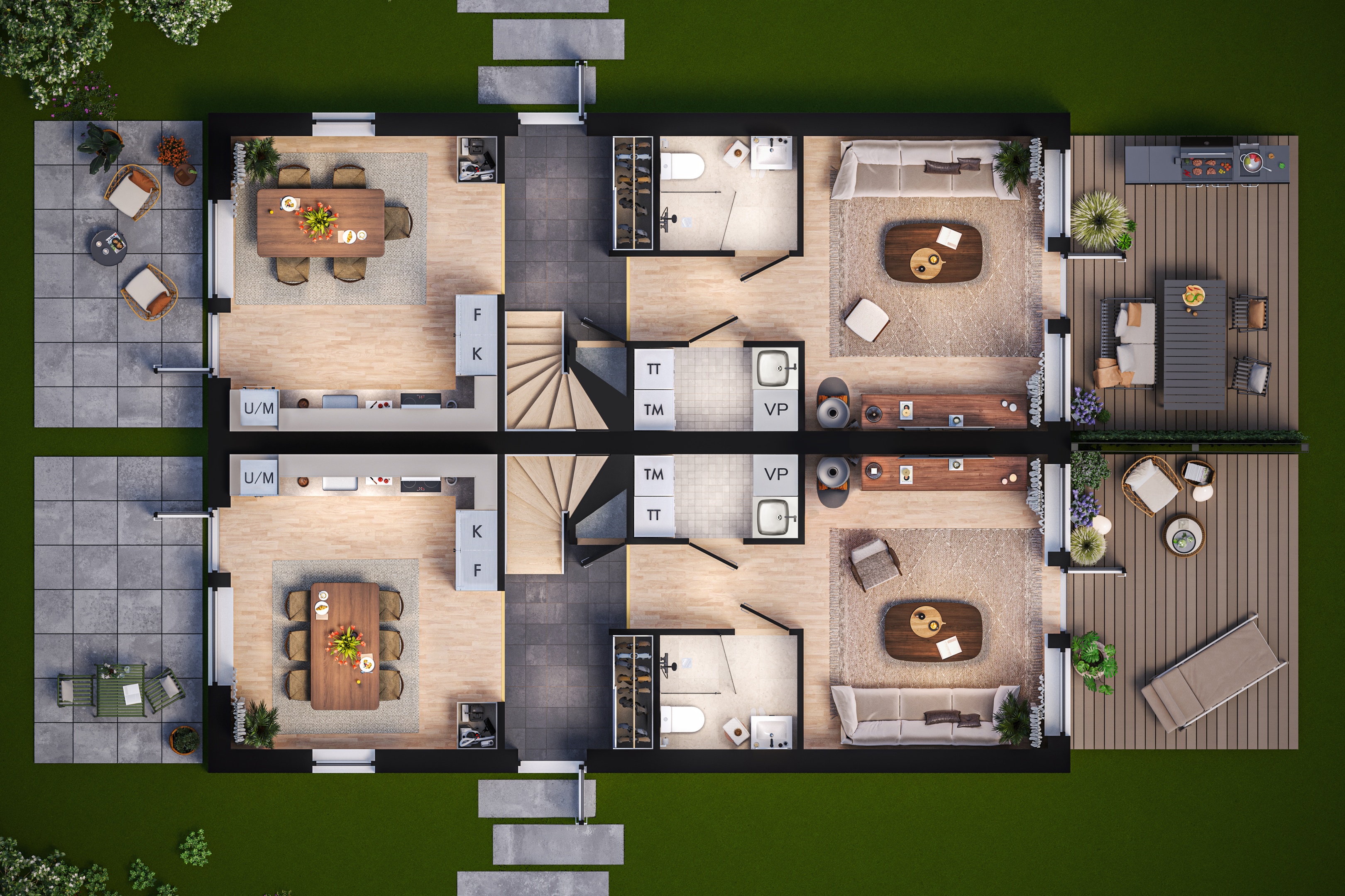 Möjlighet till uteplats på både framsidan och baksidan för härliga stunder utomhus.